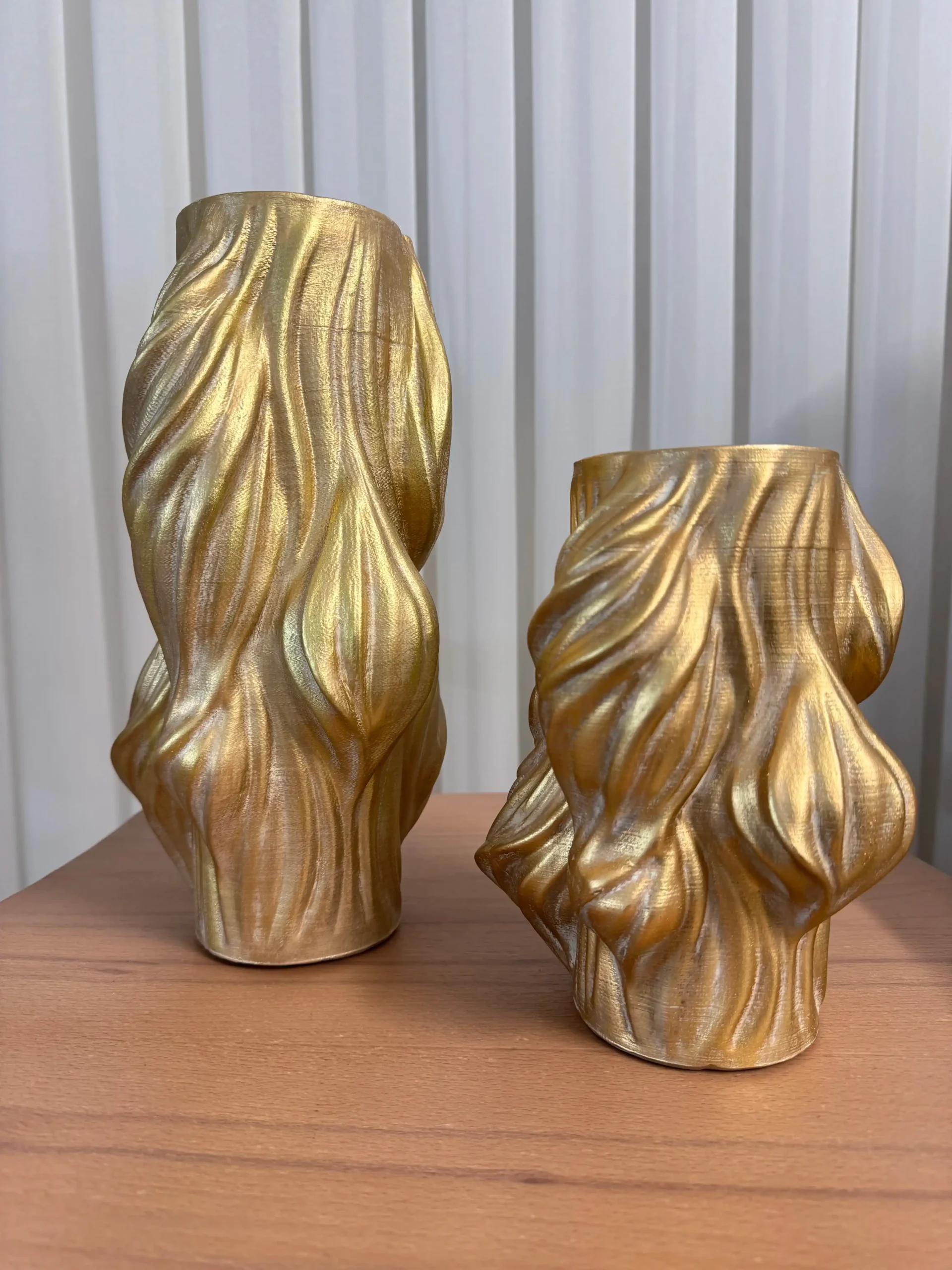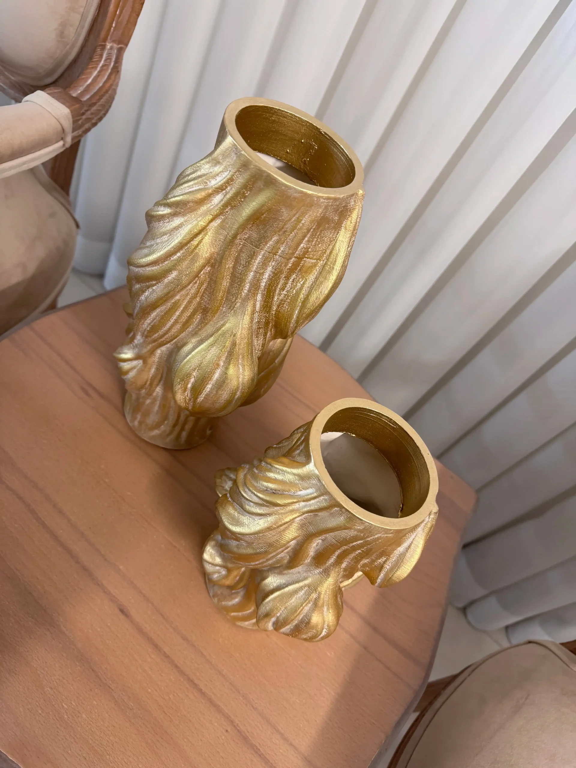 گلدان رومیزی دوسایزی طرح شعله برجسته طلایی پتینه کرم رزین پلی استر