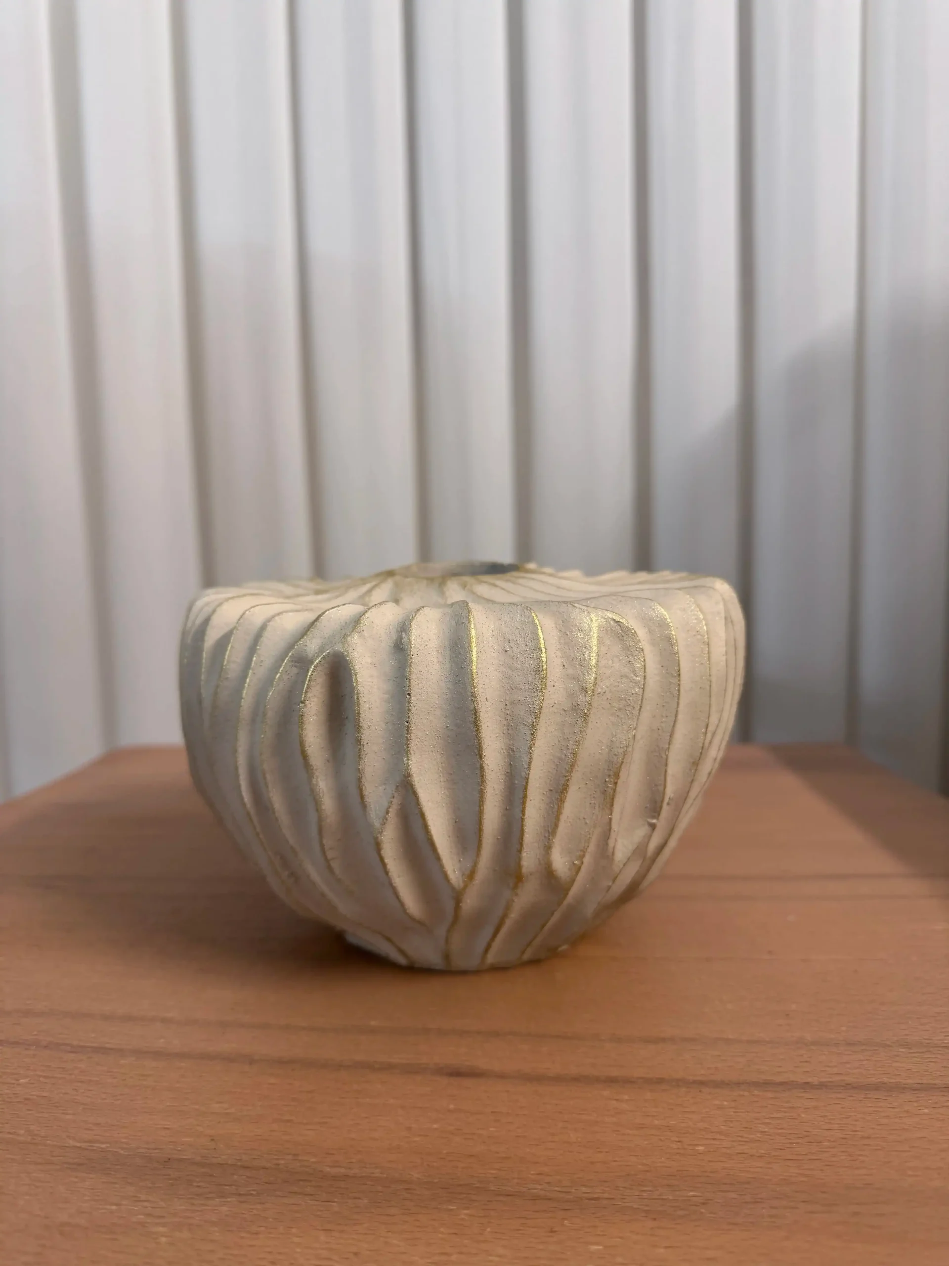 گلدان رومیزی چروک رزین پلی استر رنگ نسکافه ای طلایی